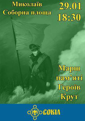 Детальніше#Сокіл_Миколаїв запрошує на смолоскипну ходу до річниці бою за станцію “Крути”. Зокрема, впродовж всього заходу сокільці будуть збирати кошти на