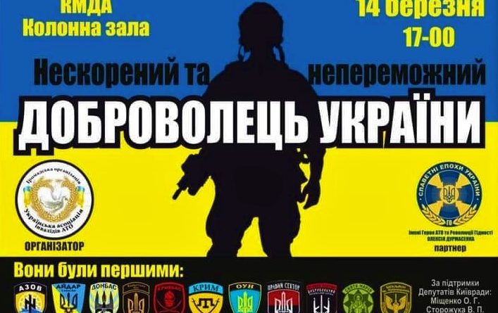 ДетальнішеНаші побратимські ветеранські організації влаштовують захід, приурочений до Дня Добровольця. Запрошуємо приєднатись всіх охочих 14 березня о 17:00 у колонній